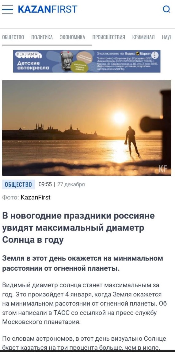 Вообще Так происходит каждый год на протяжении уже МИЛЛИАРДА лет) увеличение диска на 3% вообще никак не заметно глазу. С тем же успехом можно строчить новости каждый месяц про полнолуние)) а еще солнце названо огненной планетой. Так говорят только астрологи и космоэенргеты🤦♂️ Вот где помесь гуманитариев)