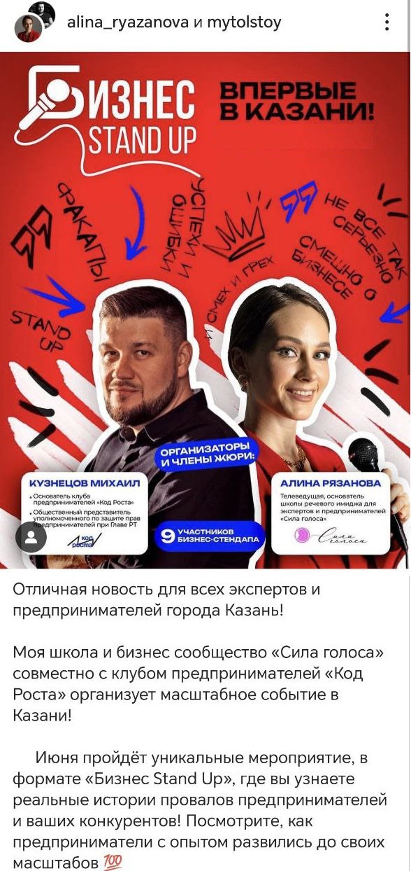 Казанский депутат-блогер Михаил Кузнецов, обожающий в самопиар, зовет подписоту на платный стендап для бизнесменов, где предприниматели рассказывают о своих неудачах.