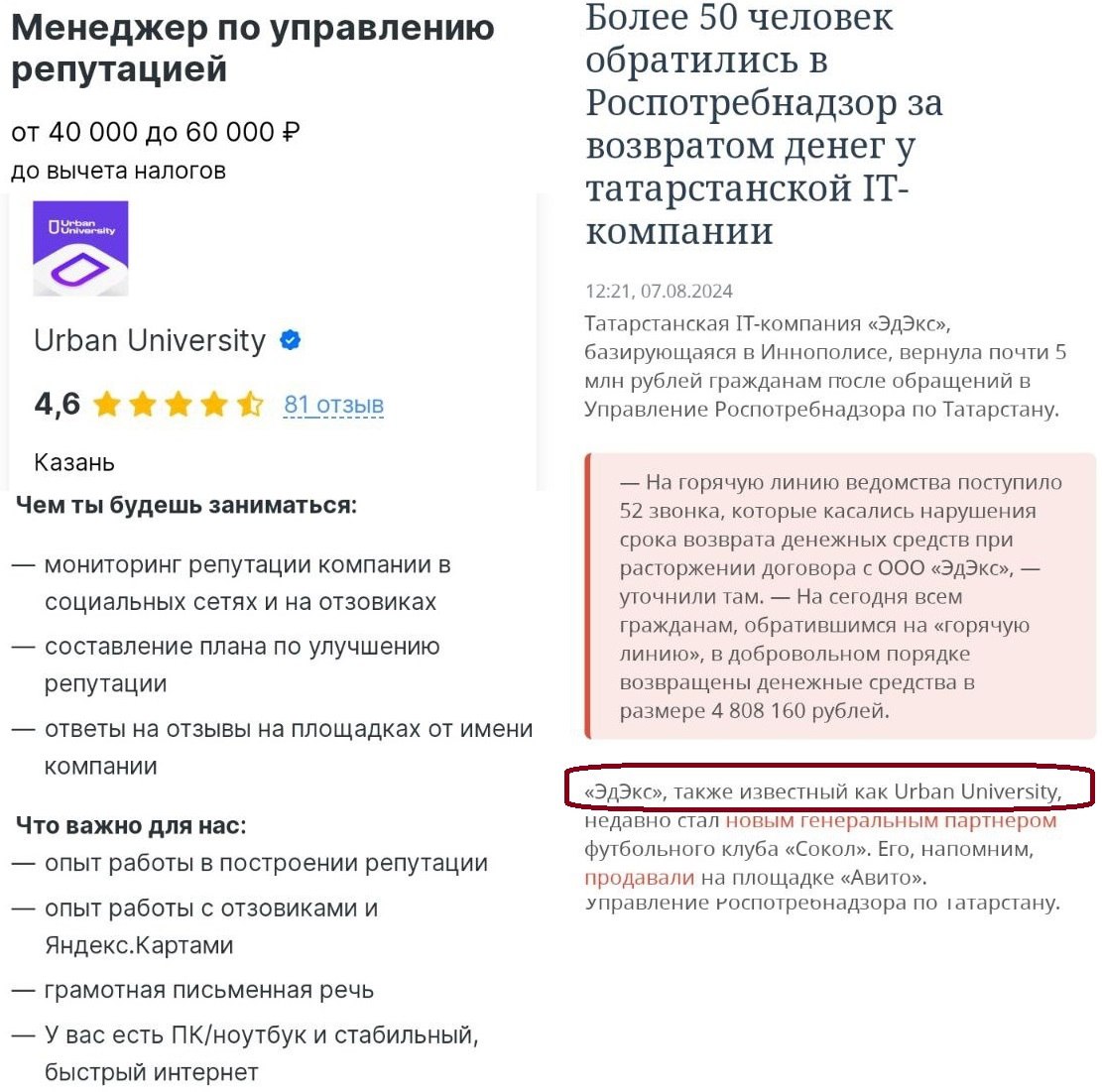 Urban University из Иннополиса, которому Роспотребнадзор недавно разнес репутацию, с сегодняшнего дня начал поиски менеджера по управлению репутацией.