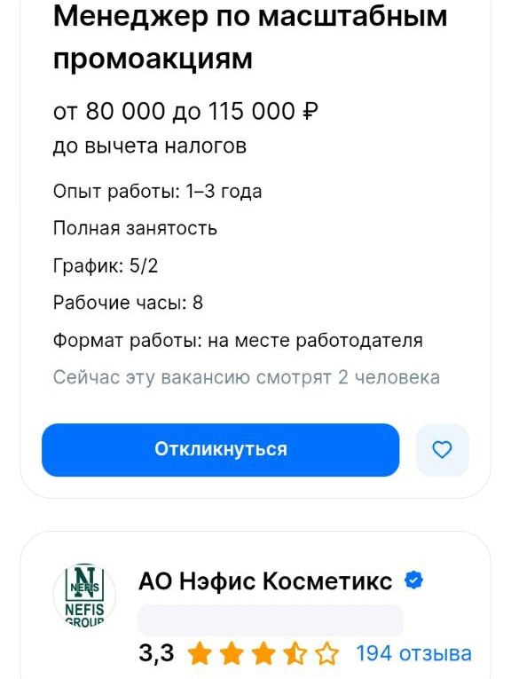 Интересно, но «Нэфис», похоже, хочет вернуться в большой маркетинг и мутить прямо-таки «масштабные промоакции», под которые нужен отдельный человек.