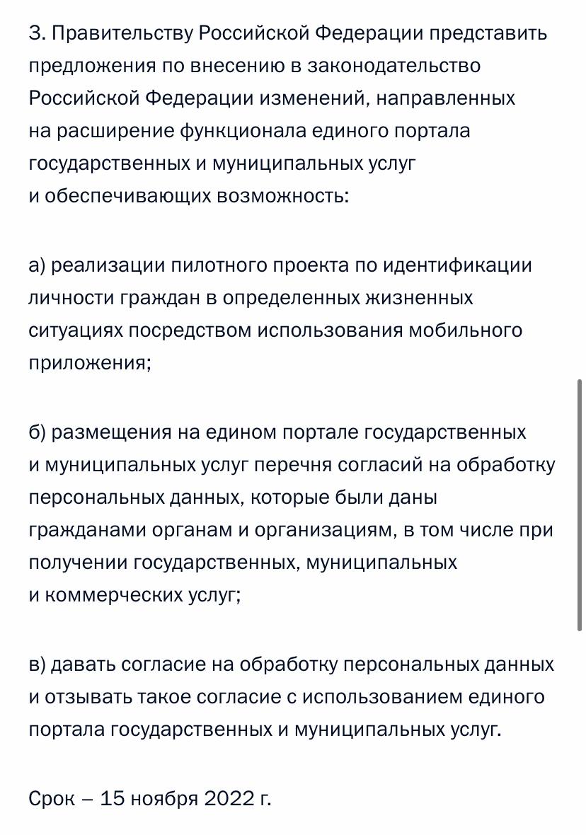 • Обеспечить возможность размещения на едином портале государственных и муниципальных услуг перечня согласий на обработку персональных данных, которые были даны гражданами органам и организациям, в том числе при получении государственных, муниципальных и коммерческих услуг.