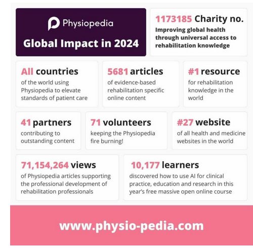 Цього року понад 31 мільйон людей відвідали Physiopedia з усіх країн світу. Що загально становить 71 мільйон переглядів усіх сторінок/статтей.