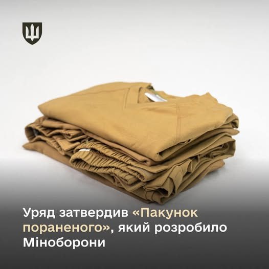 Кабінет Міністрів України підтримав ініціативу Міністерства оборони щодо впровадження «Пакунка пораненого» — спеціального набору адаптивного одягу та засобів особистої гігієни для поранених або хворих військовослужбовців, поліцейських і працівників служби цивільного захисту