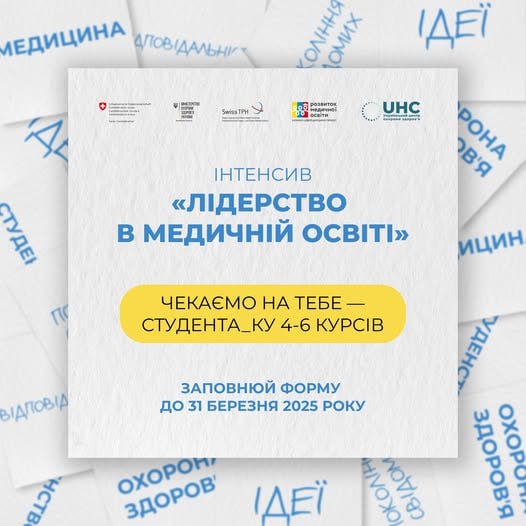 Україно-швейцарський проєкт «Розвиток медичної освіти» повідомив про відкриття набору на інтенсив «Лідерство в медичній освіті» для студентів українських ЗВО.