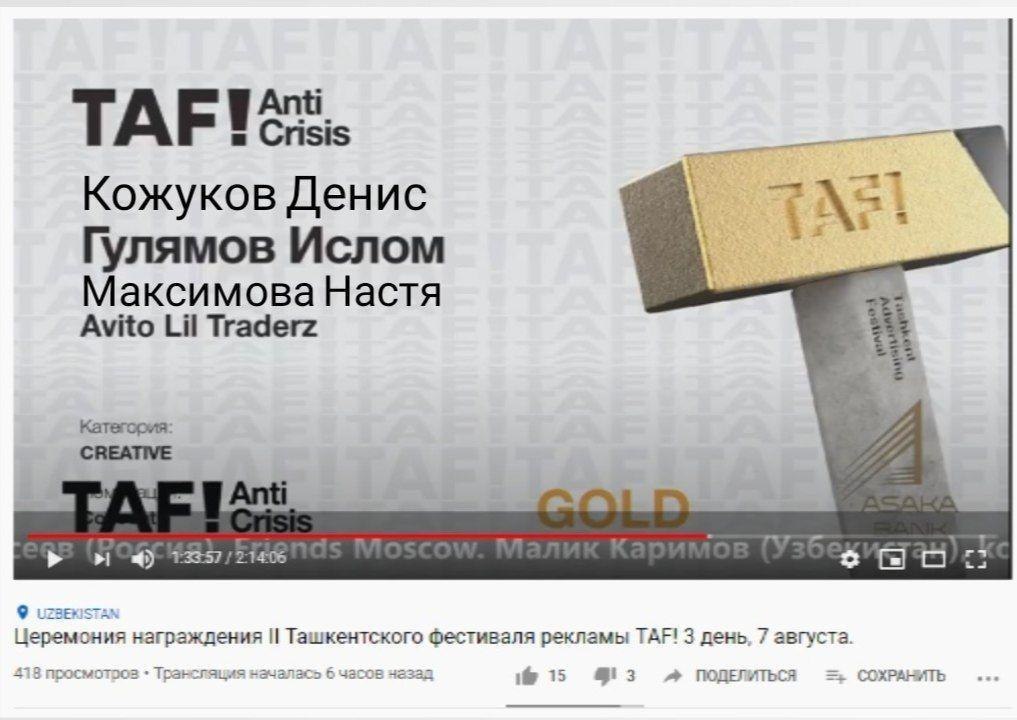 Золото на Ташкентском Фестивале Рекламы TAF