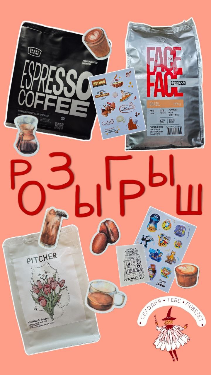 ✨2 набора зерна натуральной Бразилии под эспрессо по 250г от Face to Face и 2 стикер-пака от Planto и Петмол.