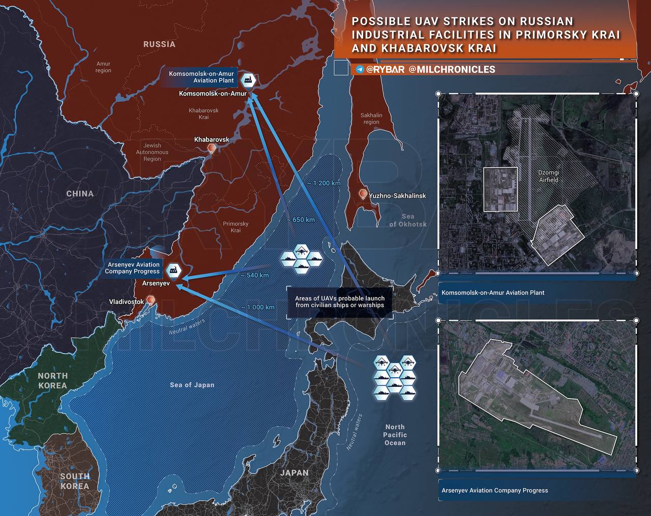 🔹 Về khả năng máy bay không người lái UAV tấn công Primorye và Lãnh thổ Khabarovsk - phân tích của Rybar.