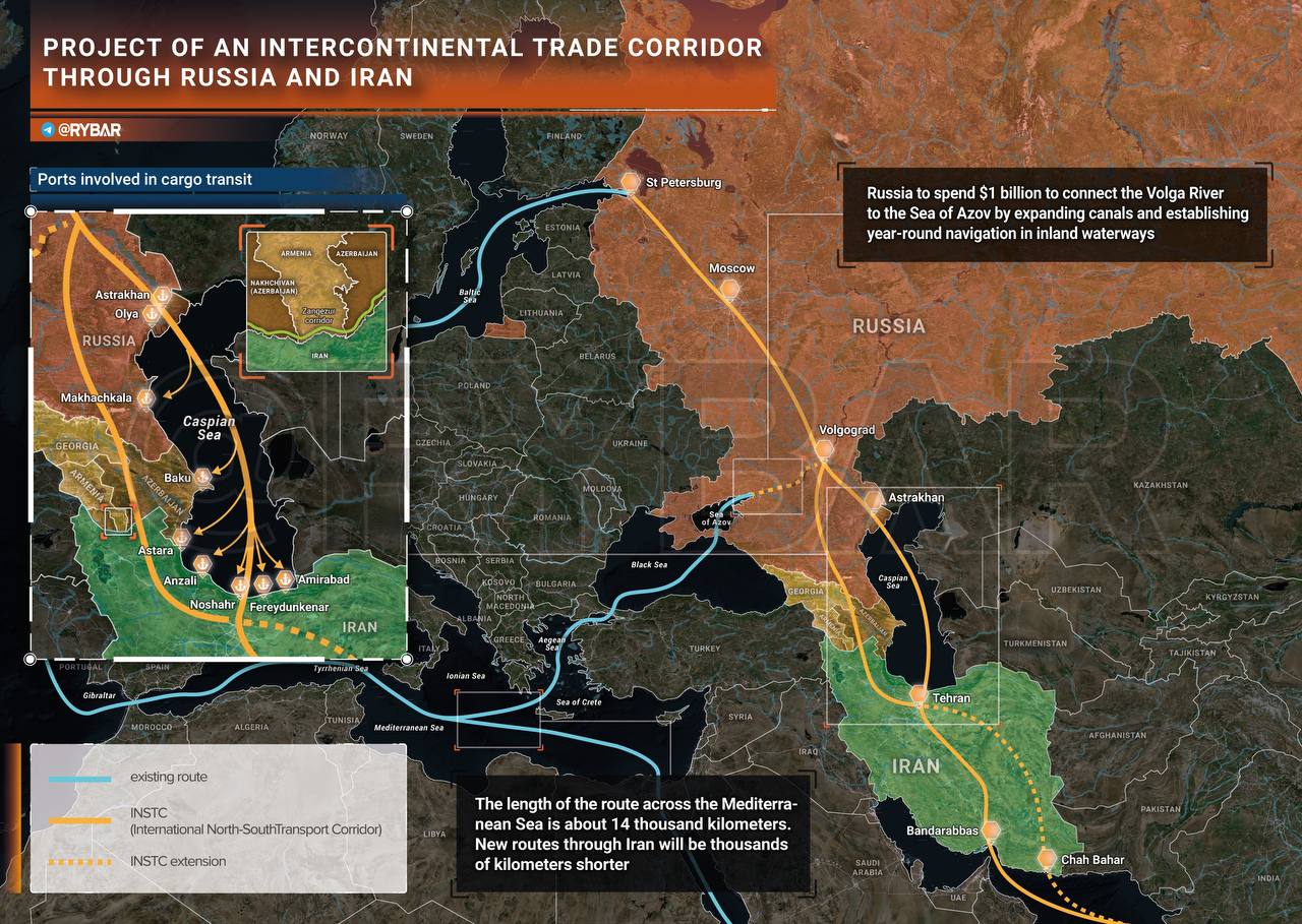 Con đường xuyên lục địa chạy từ Đông Âu đến Ấn Độ Dương, có chiều dài 3000 km và được bảo vệ khỏi các tác động bên ngoài. Nhiều tàu buôn của Iran, bao gồm cả những tàu đang bị trừng phạt, đã đi theo tuyến đường mới ở Biển Caspi.