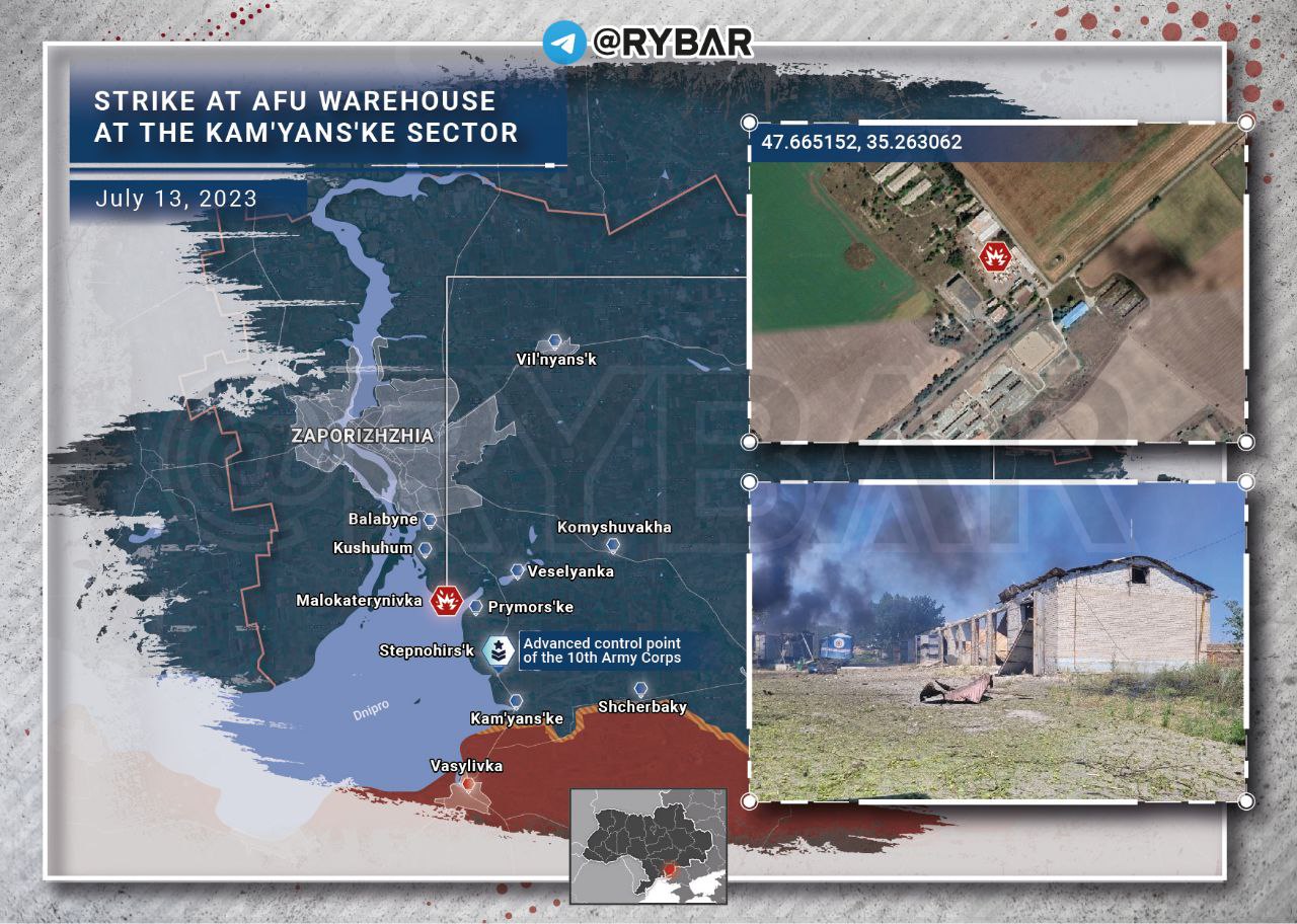 Hôm qua, quân đội Nga đã tấn công một số cơ sở của Lực lượng Vũ trang Ukraina ở vùng Zaporozhie. Một trong những mục tiêu bị đánh trúng là một nhà kho và chính quyền Ukraina ngay lập tức cáo buộc Liên bang Nga "phá hủy cơ sở hạ tầng dân sự".