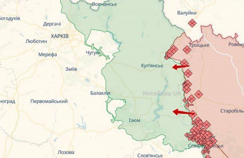 - Ngoài ra, sự kích hoạt của người Nga ở Masyutovka (gần Kupyansk), cũng dẫn đến tả ngạn sông Oskol. Nhưng cuộc tấn công ở đây gây ra mối đe dọa cho chính Kupyansk, một đầu mối giao thông quan trọng trong tuyến hậu cần của Lực lượng Vũ trang Ukraina.