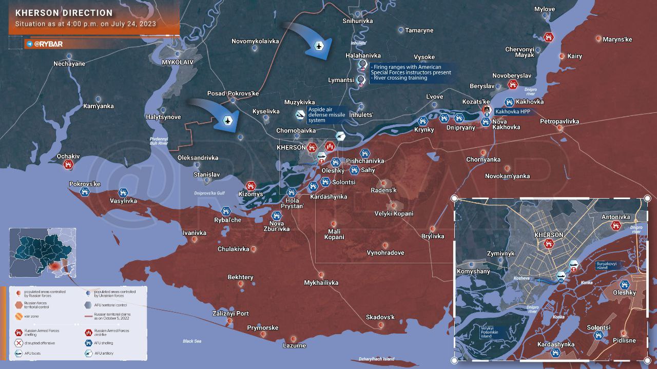 🔻 Và cách xa đường giao tranh, các huấn luyện viên người Mỹ đang huấn luyện các nhóm tấn công Ukraina ở Galaganovka và Liman. Trên sông Ingulets, các đơn vị Ukraine đang huấn luyện để vượt sông, có thể đó là một phần của chiến dịch tấn công trong tương lai.