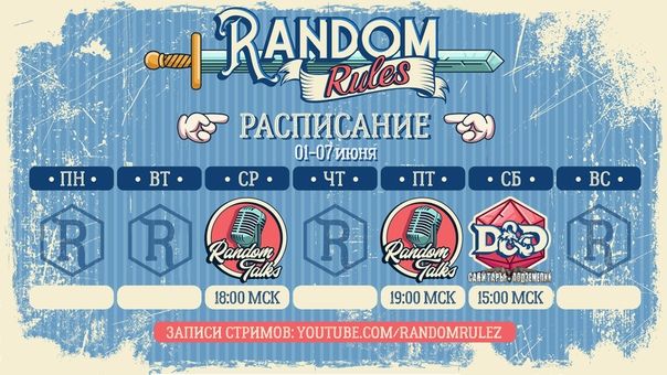 🎙 Пт. 19:00 - рубрика RandomTalks. Тематика разговора будет объявлена в анонсе перед стримом. 🎙