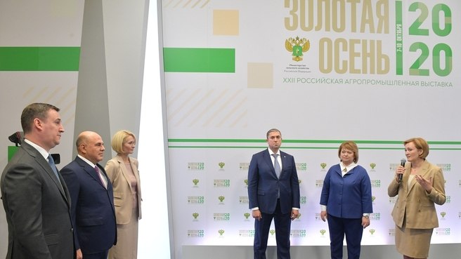 Премьер-министр России Михаил Мишустин принял участие в открытии XXII-й агропромышленной выставки «Золотая осень — 2020». Как передает ТАСС, его сопровождали вице-премьер Виктория Абрамченко и глава Минсельхоза РФ Дмитрий Патрушев.