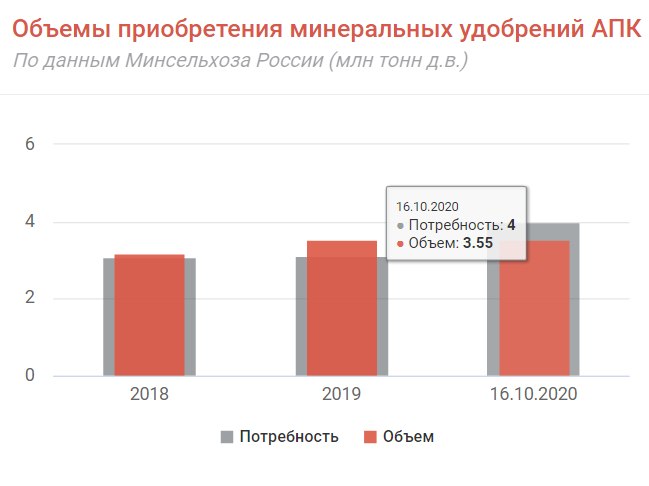 ‼️Объем поставок минеральных удобрений на внутренний рынок превысил показатель за весь прошлый год (3,53 млн тонн в действующем веществе) и по состоянию на середину октября составил 3,55 млн тонн.