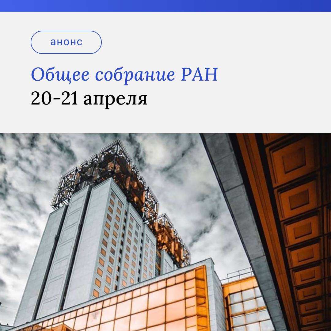20-21 апреля состоится Общее собрание членов Российской академии наук, которое пройдет в смешанном формате – очного присутствия и видео конференции.