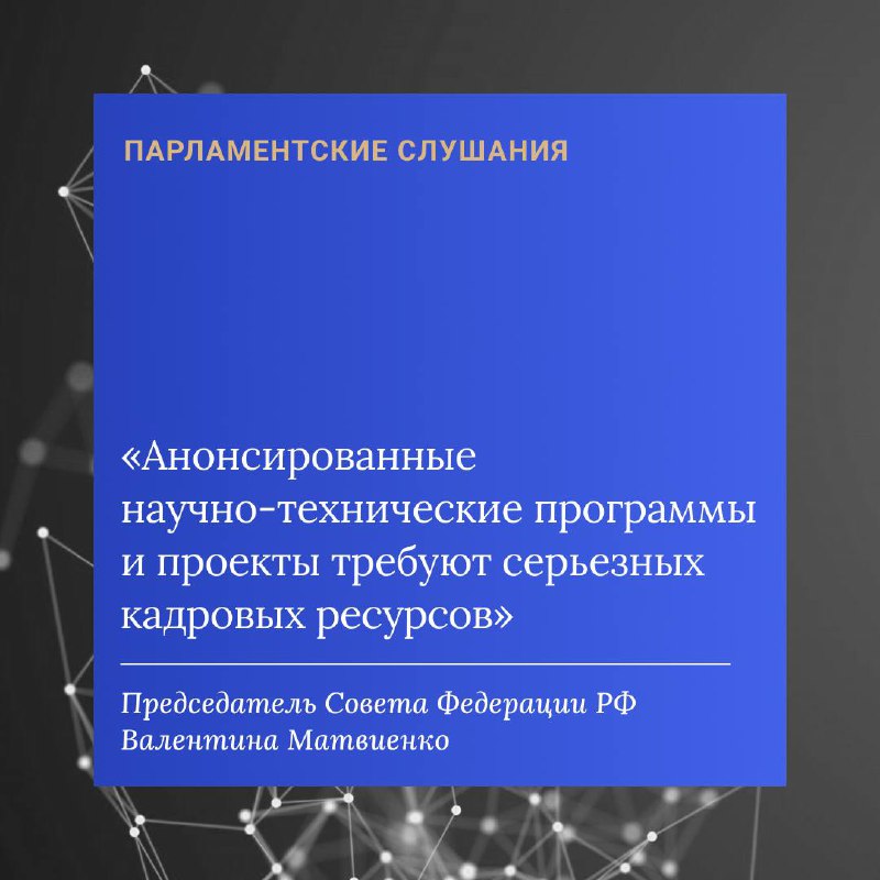 На проходящих сегодня парламентских слушаниях: «Научный кадровый потенциал страны: состояние, тенденции развития и инструменты роста» выступила председатель Совета Федерации Валентина Матвиенко. Слушания проходят в расширенном составе с участием членов Правительства РФ, сенаторов, руководителей субъектов РФ, представителей РАН и российского ректорского сообщества.
