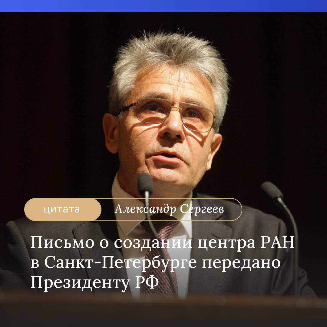 «Надо сказать, что первое заседание Совета было очень интересным, и есть свои проблемы, связанные с организацией в Санкт-Петербурге академической «ячейки»<…>. В Санкт-Петербурге 180 членов Российской академии наук. Было принято обращение к президенту страны с просьбой создать в Санкт-Петербурге отдельную академическую структуру. Я это письмо принес, положил президенту, были получены соответствующие поручения, и сейчас это будет сделано», – сказал Александр Сергеев, возглавляющий Совет по региональной политике РАН.