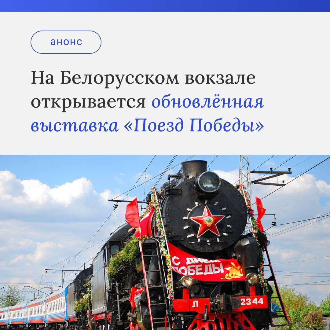 На Белорусский вокзал «приехал» Поезд Победы - единственная в мире иммерсивная инсталляция, расположенная в движущемся составе. Особое внимание в экспозиции уделено научным открытиям и достижениям советских ученых, которые внесли весомый вклад в Победу и развитие мировой науки в целом.