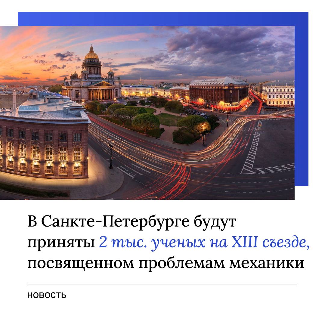 Съезд пройдет в Петербурге впервые, а его площадкой станет политехнический университет Петра Великого. Амбассадор Санкт-Петербурга, член президиума Национального комитета по теоретической и прикладной механике, директор научно-образовательного центра «Газпромнефть-Политех» Антон Кривцов подтвердил журналистам готовность вуза к проведению мероприятия.