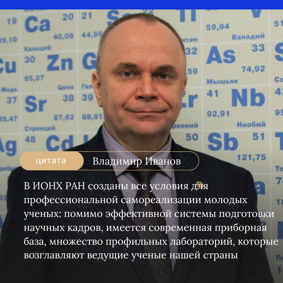 «Несмотря на то, что ИОНХ РАН – старейший химический институт в России, одним из ключевых направлений нашей деятельности была и остается углубленная подготовка молодых исследователей. Реализуемая в институте сквозная система обучения включает в себя работу со школьниками, студентами, аспирантами по наиболее актуальным направлениям современной науки, а также дополнительное химическое образование дипломированных специалистов.
