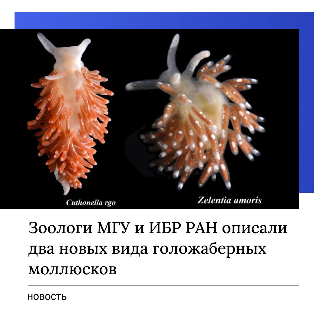 В ходе новой экспедиции «Восточный бастион — Курильская гряда 2021», которая была организована Русским географическим обществом, ведущие научные сотрудники Зоологического музея МГУ и Института биологии развития РАН Александр Мартынов и Татьяна Коршунова обнаружили на островах Курильской гряды два новых для науки вида голожаберных моллюсков из родов Zelentia и Cuthonella, причем представители первого из них ранее встречались лишь в Северной Атлантике и на юго-востоке Тихого океана. Отнести их к новым видам позволили результаты современных генетических и морфологических исследований.