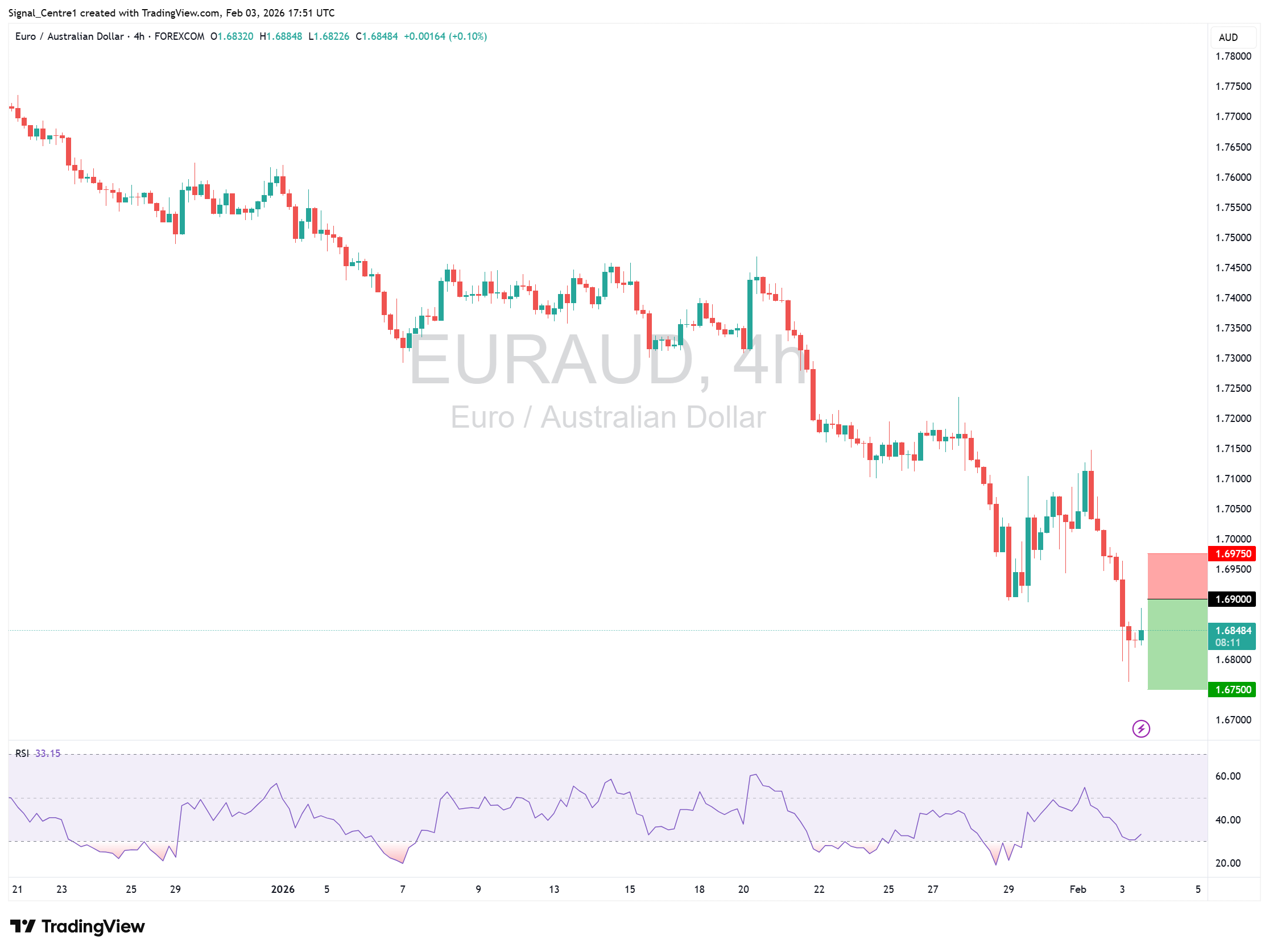 📉 [Sell Limit] EUR/AUD - Bearish - We look to Sell at 1.6900