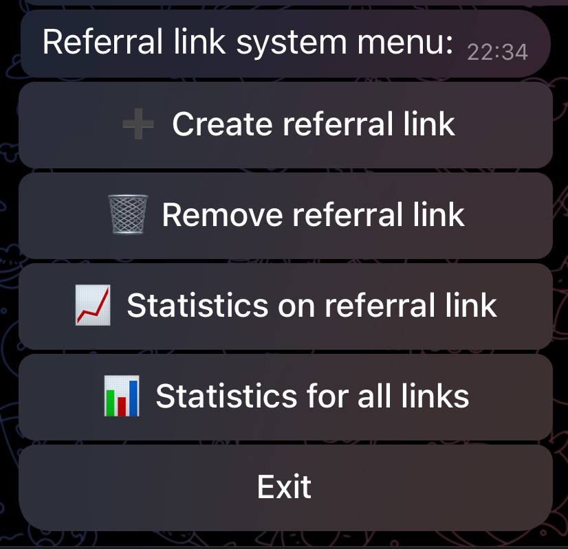 We've also added the ability to create unique links and see how many people clicked on them. Just send /referral_system_menu to your bot.