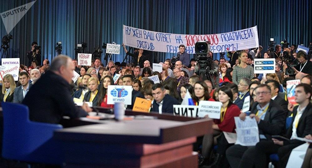 Хе-хе-хе… Мы-то знаем, почему появилось это письмо. На прошлогодней пресс-конференции, состоявшейся 20 декабря 2018 года, активисты движения «Суть Времени» развернули большой транспарант с требованием ответить миллиону граждан России, подписавшихся против принятия пенсионной реформы. И хотя обращение невозможно было не заметить, Владимир Путин не ответил на него и никак не прокомментировал…