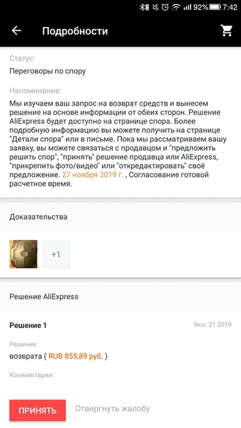 Совет: Если у вас возникли какие-либо проблемы с заказом то сначала подтвердите товар, и через 2-3 дня смело открывайте спор. Какие плюсы?