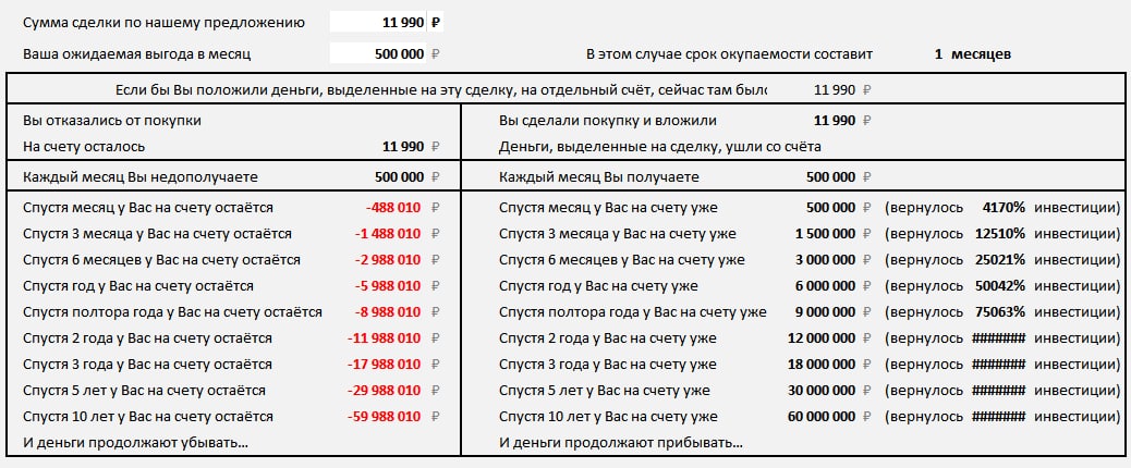Внимательно изучите таблицу. Вы увидите, сколько можете зарабатывать и сколько денег недополучите, если не будете зарабатывать так, как я.