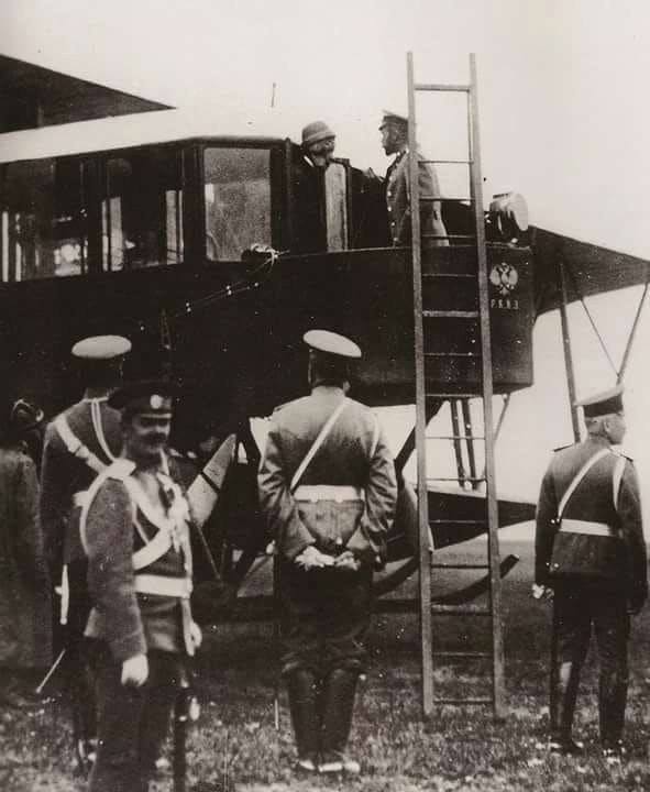 Фото: Император Николай ІІ беседует с Игорем Сикорским во время осмотра самолета "Русский Витязь". Красное Село, 1913 год.