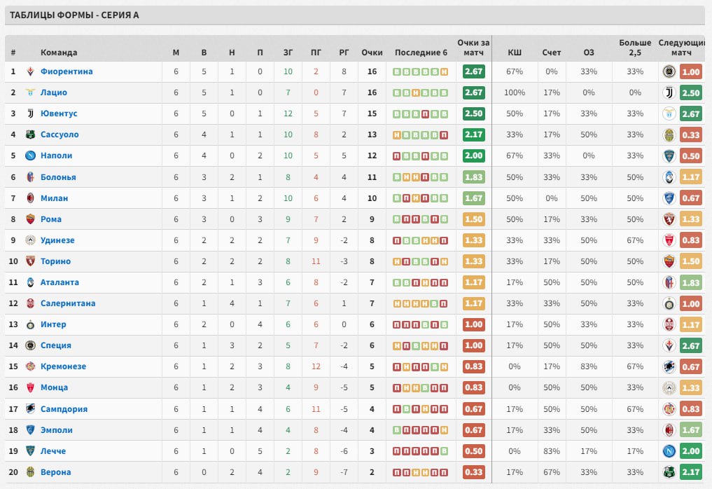 🇮🇹 Так сейчас выглядит график набора очков в Серии А.