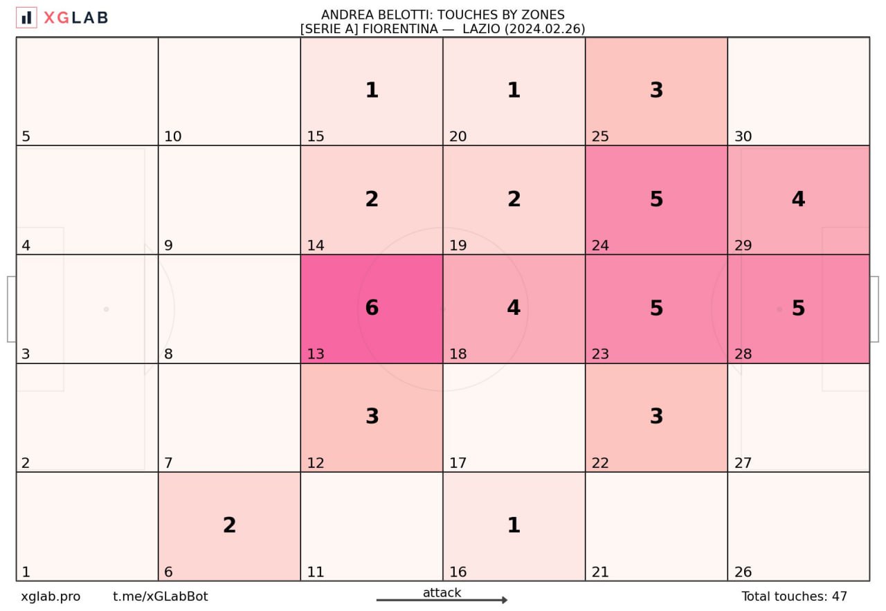 Белотти же, как и было подчёркнуто ранее, очень классно опускался в середину, если того требовали обстоятельства. 20 касаний Андреа из 47 пришлись на вторую треть.