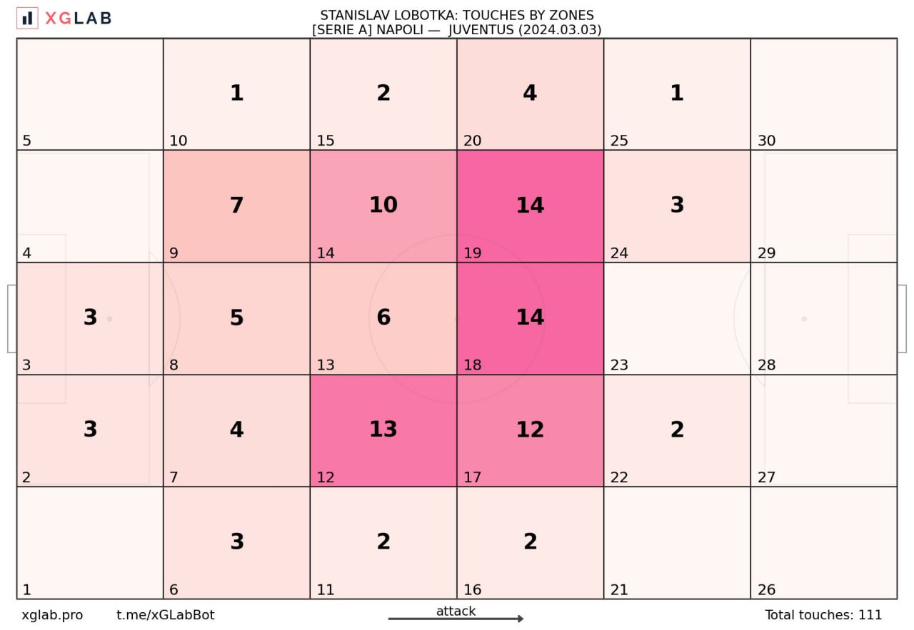 Стэн доставил немало хлопот трио Алькарас-Локателли-Миретти, причём в двух фазах. При игре без мяча либо встречал высоко, либо делал умное «перекрытие тенью» на своей половине, что с учётом его габаритов особенно удивительно и ценно. Находясь в высокой позиции, Лоботка грамотно раздёргивал трио ЦПЗ, всякий раз вынуждая их выдвигаться на реактивного опорника, обнажая другие зоны.