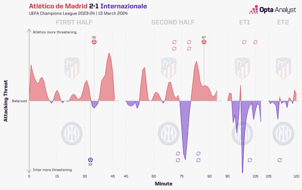 Академизм в деле убийства нерва игры – изобретение, запатентованное Симеоне. В обстоятельствах, когда необходимо подчинить себе темп матча, пускай и путём полного выхолащивания футбола, «Атлетико» в последнюю декаду не было равных. Хрестоматийные примеры на слуху: легендарное двухматчевое противостояние с «Баварией» в 2016-ом, так же – почти по зеркальным шаблонам – был пройден и «Лестер» годом позже. Однако казалось, причём ещё до первого матча на «Джузеппе Меацца», что «Интер», блистательно использующий тактику выманивания на себя даже самых низко посаженных блоков, найдёт противоядие от тактических рудиментов Диего. Индзаги, с его более очеловеченной осторожностью, больше импонировал и казался логичным фаворитом.