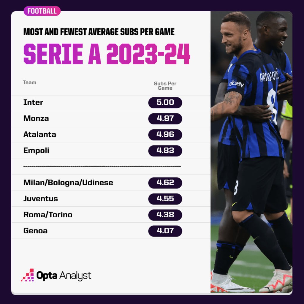 При этом второй во всей Европе по числу результативных замен идёт «Аталанта» (21 гол после 139 замен), третьим – «Кальяри» (у островитян 19 мячей при 139 заменах, они делят свою позицию с «Баварией»).