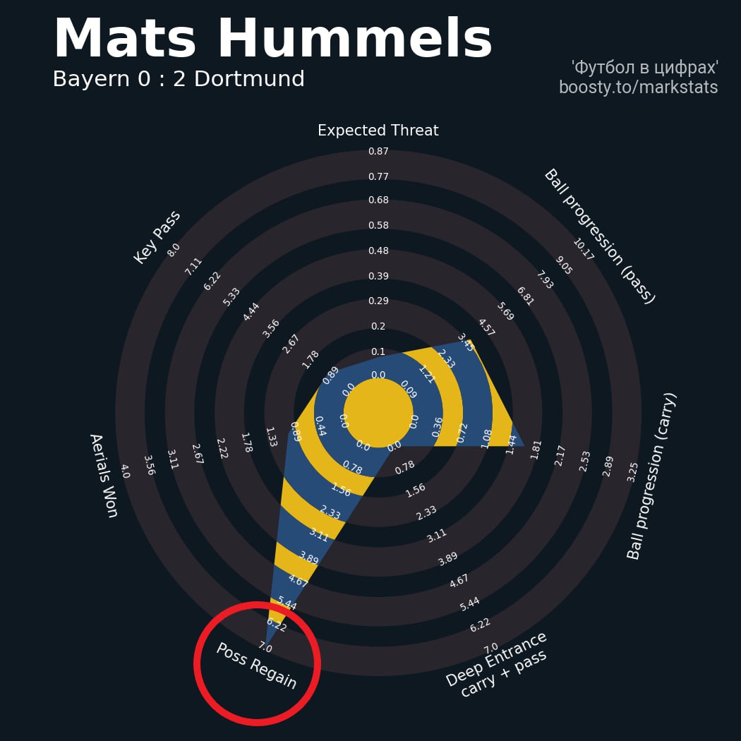 В Дер Классикер Матс был безоговорочно лучшим. С первых же минут он продемонстрировал свою заряженность на игру, когда в лучших традициях Дармиана прокрался к воротам хозяев, пробив из пределов штрафной. Позже «шмели» влились в привычный по сезону сценарий, забив мяч и сыграв от соперника. В этом Хуммельсу вообще нет равных не только в «Боруссии», но и среди всех вчерашних полевых. Итоговые 7 возвратов владения говорят красноречивее любых вербальных заискиваний перед Матсом. Идеальный в своей хладнокровности и аккуратности разрушитель.