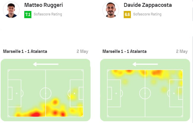 Редкий случай по сезону, когда Руджери перебегал Дзаппакосту – самого двужильного и незаменимого «бровочника» в системе Гасперини. Конечно, на долю Давиде вчера выпала нелёгкая задача. Он действовал против треугольника Энрике-Мурильо-Верету, несколько раз играя чуть ли не в партере с визави (на его фланге градус борьбы был действительно выше), однако и подстраховщики у 31-летнего итальянца были лучше: Скальвини провёл выдающийся матч, выдержав давление на свою зону (лишь благодаря нему «Марсель» смог забить только из-за пределов штрафной), а де Рон оказался хорош в разрушении.
