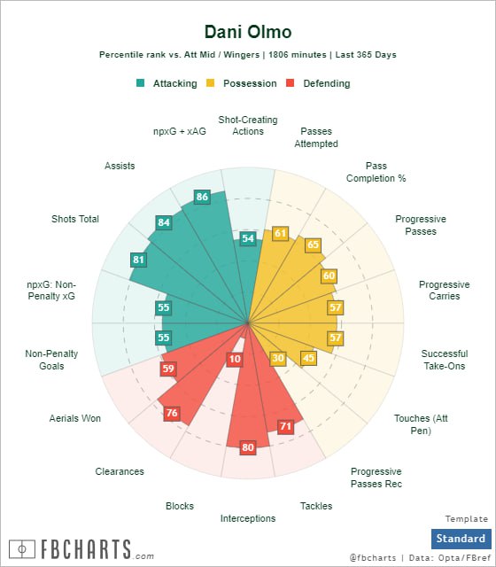 В этом сезоне Дани набрал 8 + 5 во всех турнирах в 25 матчах – сказались две травмы, в совокупности отнявшие у него порядка трёх месяцев. Он уже не настолько ценный лот, особенно на фоне мощного прогресса остальных коллег по амплуа. Тем не менее, летнее ТО станет для него определяющим. Либо «Лейпциг» покинут все ключевые игроки, а Ольмо будет вверена роль лидера (в отсутствие Симонса он как минимум претендует на звание главного связующего звена в переходных фазах и дирижёра темпа атак), либо он вернётся на родину, где ему придётся перезапускать карьеру в абсолютно новой футбольной парадигме: после узкой формации 4-2-2-2 с молниеносными полуфлангами Дани предстоит инкорпорироваться в систему комбинационного, местами растянутого футбола Хави.