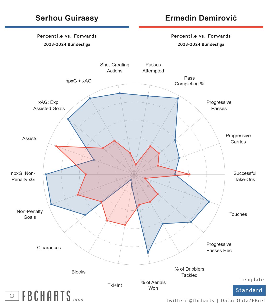 Поймал себя на мысли о том, что никогда не делал сравнительный анализ Гирасси и Кейна. Впрочем, исправляться не буду. Вместо бессмысленного сопоставления абсолютно несопоставимых величин (всем ведь очевидно, что лучший сезон в карьере Серу уже позади?) , лучше сравнить бывшего форварда «Штутгарта» с новоприобретённым.