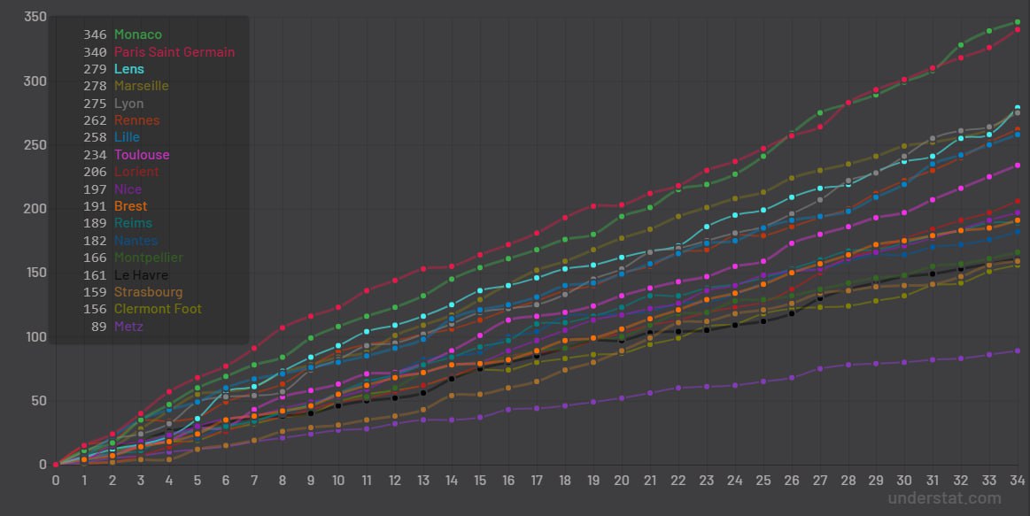 При этом амплитуда колебаний сезоном ранее была менее заметной и более, сформулируем так, закономерной. А вот в розыгрыше 2023-24 обе величины: