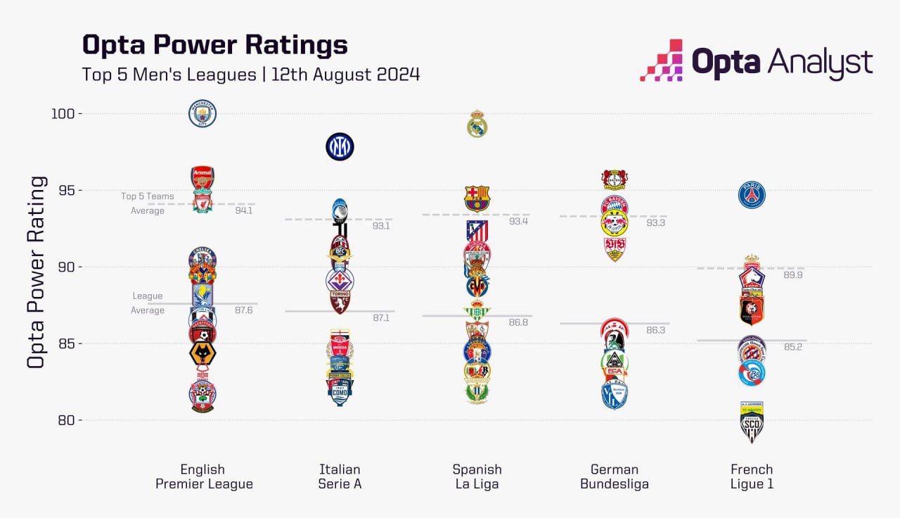 У Opta вышел рейтинг конкурентоспособности чемпионатов большой пятёрки. Согласно нему, тенденции следующие: