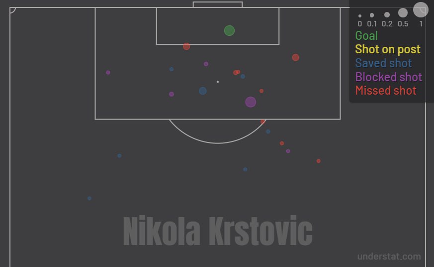 Никола Крстович, ещё по ходу прошлого сезона отметившийся неуёмной тягой к ударам со всех позиций, продолжает оставаться самой примитивной «девяткой» Серии А и по сей день. Впрочем, если в розыгрыше 2023/24 львиная доля опасных моментов «Лечче» сводилась на нет «благодаря» чрезвычайной инициативности черногорца, то теперь практически весь атакующий конструктив «салентийцев» завязан на Крстовиче.