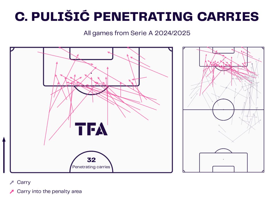 В отличие от большинства полезных дриблёров, то есть тех, у кого количество обычных dribbling actions не превышает число progressive runs, Пулишич действует крайне нестандартно.