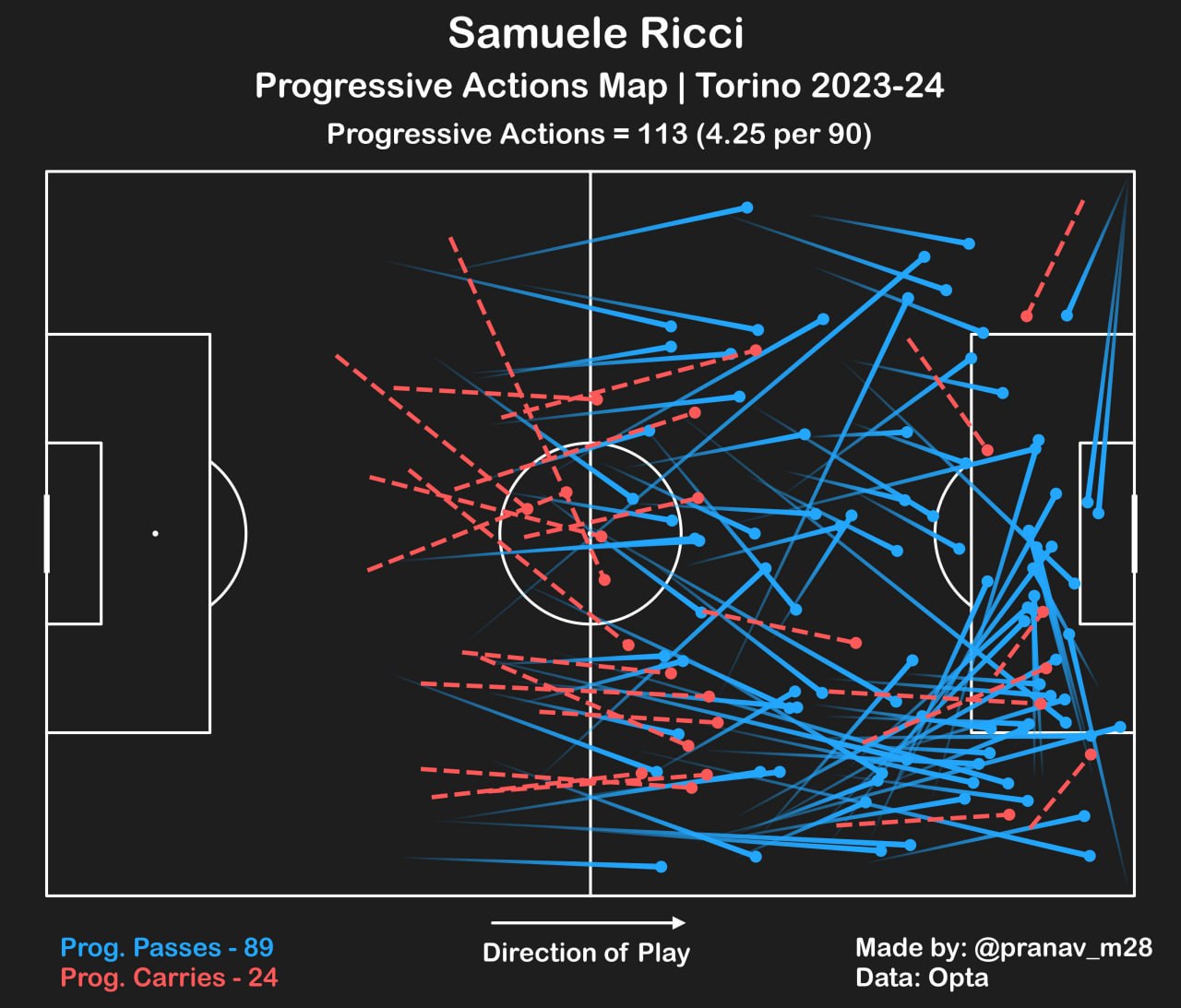 У Риччи снизился тот космический процент (около 92%) сохранённых под прессингом владений, благодаря которому он ещё совсем недавно входил в тройку самых привлекательных опорников Европы. Думаю, вне контекста эта информация мало о чём скажет даже самому внимательному зрителю матчей «Торино», однако контекст здесь имеет определяющее значение.