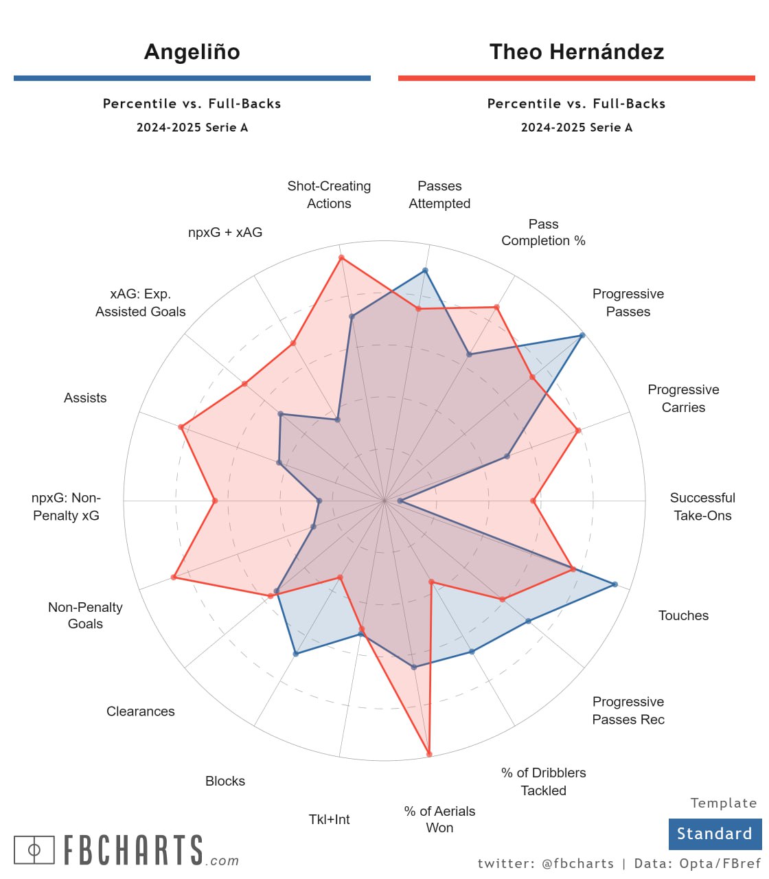 Перфоманс двух ЛЗ – Анхелиньо и Тео – самая, на мой взгляд, интересная часть сегодняшней битвы на «Сан-Сиро». Для обоих календарный год выдался не самым простым, причём, если француз в том повинен не меньше, чем внешние обстоятельства, то испанец, поначалу реально недотягивавший из-за физических кондиций, в дальнейшем стал скорее заложником кадровой конъюнктуры (читай – тренерских перестановок), нежели собственных немощей.