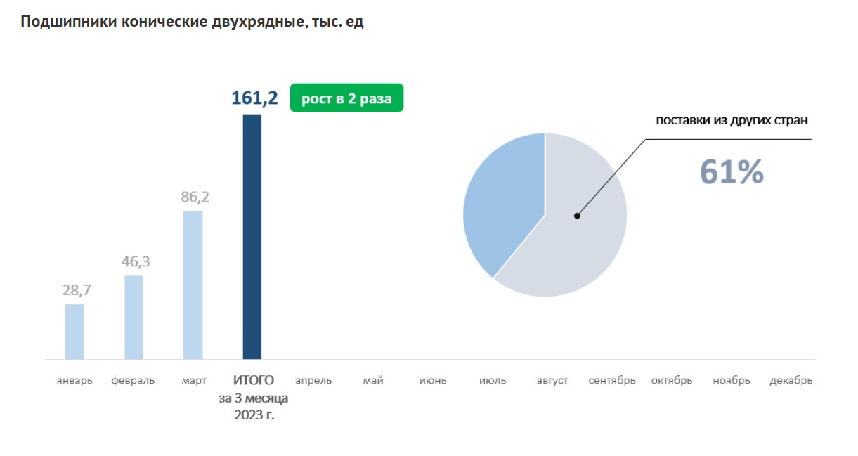 Справочно: За I квартал 2023 года в России были реализованы 161,2 тыс. буксовых кассетных подшипников для грузовых вагонов