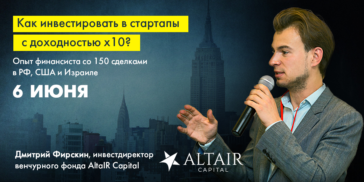 Друзья, добрый вечер! Уже завтра, 6 июня в 18:30 пройдет мастер-класс «Как инвестировать в стартапы с доходностью x10? Опыт финансиста со 150 сделками в РФ, США и Израиле».