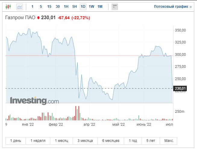 ❗️Акции Газпрома падают на 30%