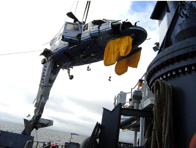 Расшифровка бортового самописца показала, что за 35 секунд до падения пилоты пытались передать сигнал Mayday (СОС). "Немного увеличим скорость", - сказал командир незадолго до падения. Затем последовало громкое восклицание и шум, потом три раза тихо "Mayday". Перед тем, как столкнуться с водой, вертолёт успел сделать 13 кругов вправо. "У нас отломился хвост?",- спросил второй пилот. Это была последняя различимая фраза.